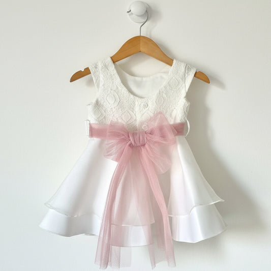 Vestido crudo/rosa ceremonia (6 a 36 meses)