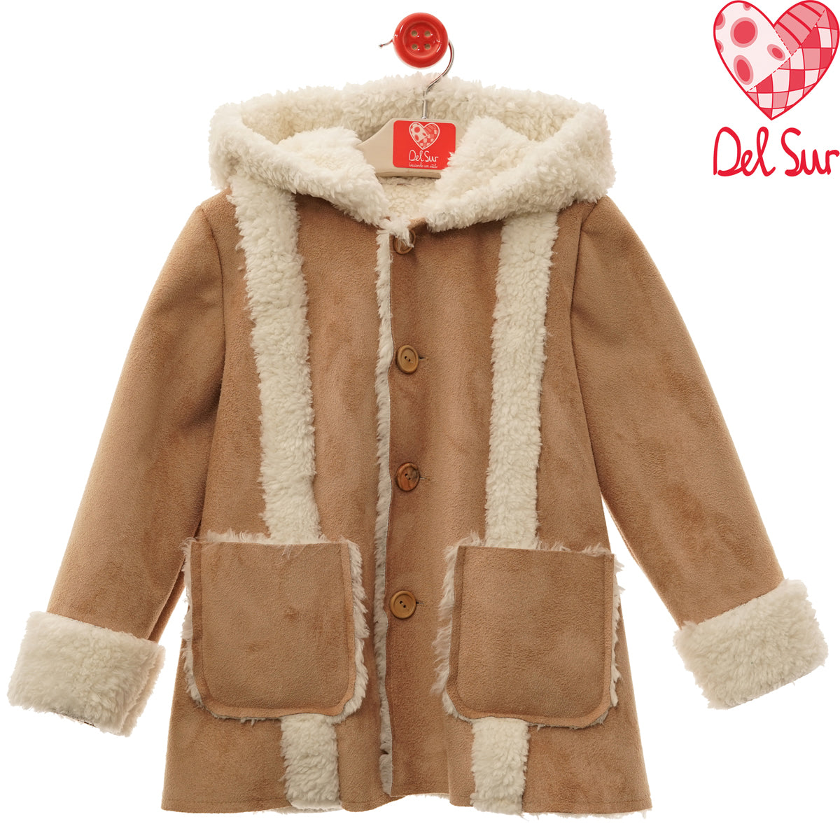 - Abrigo infantil de paño con borrego, color en un tono camel