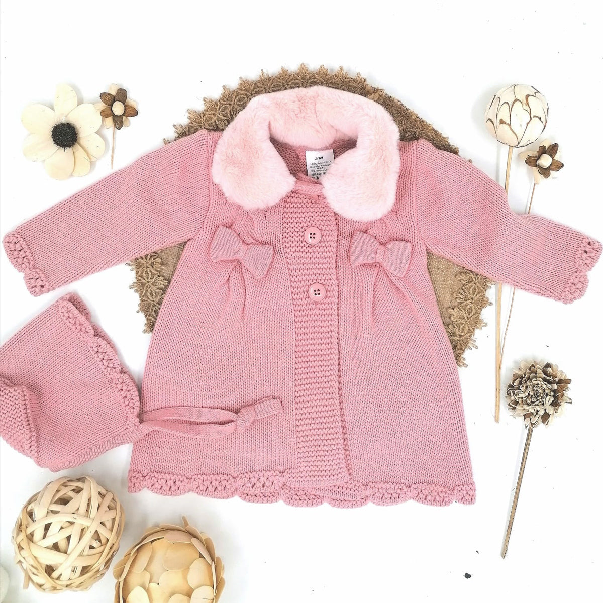 - Abrigo con pelo en cuello para bebe de punto con capota a juego