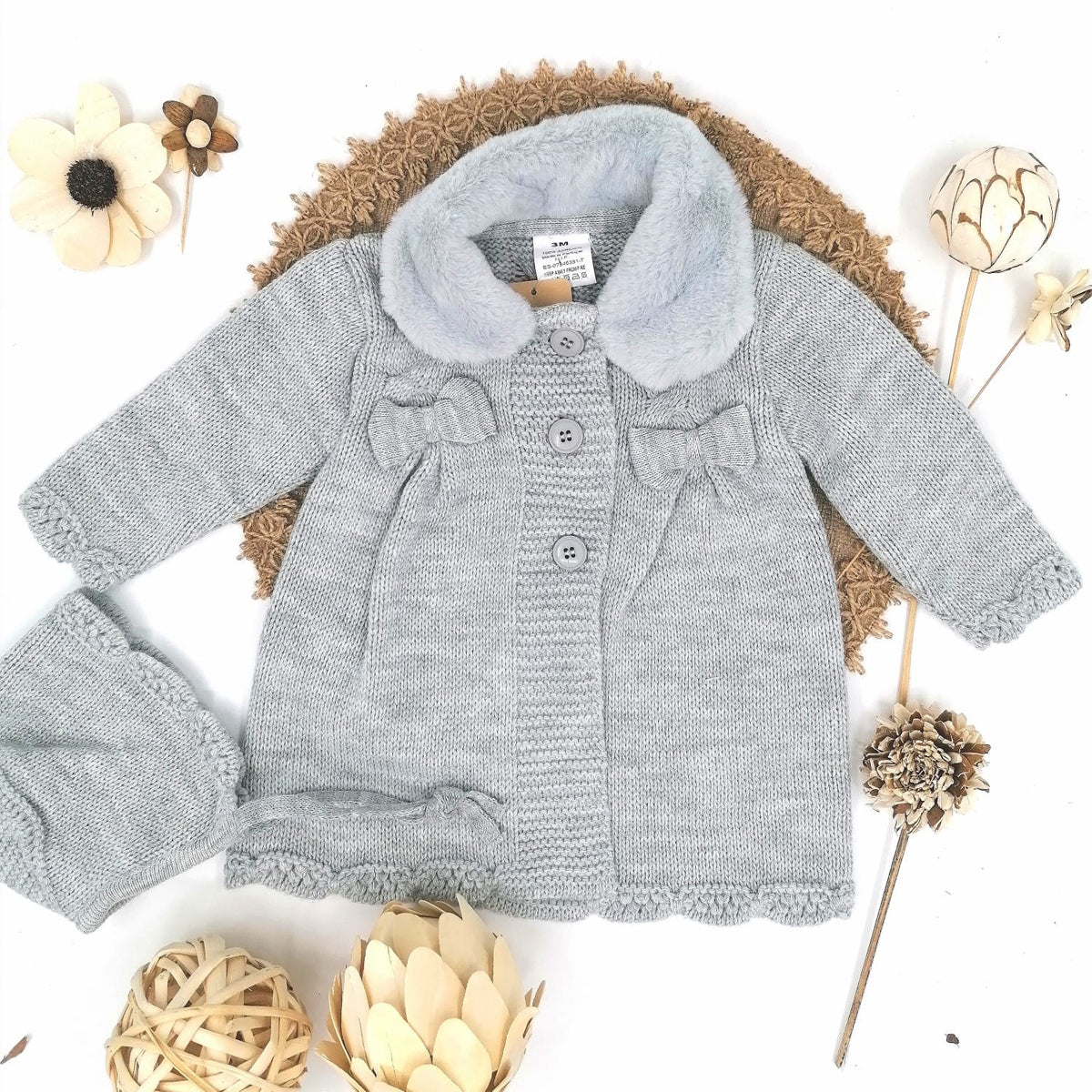 - Abrigo con pelo en cuello para bebe de punto con capota a juego