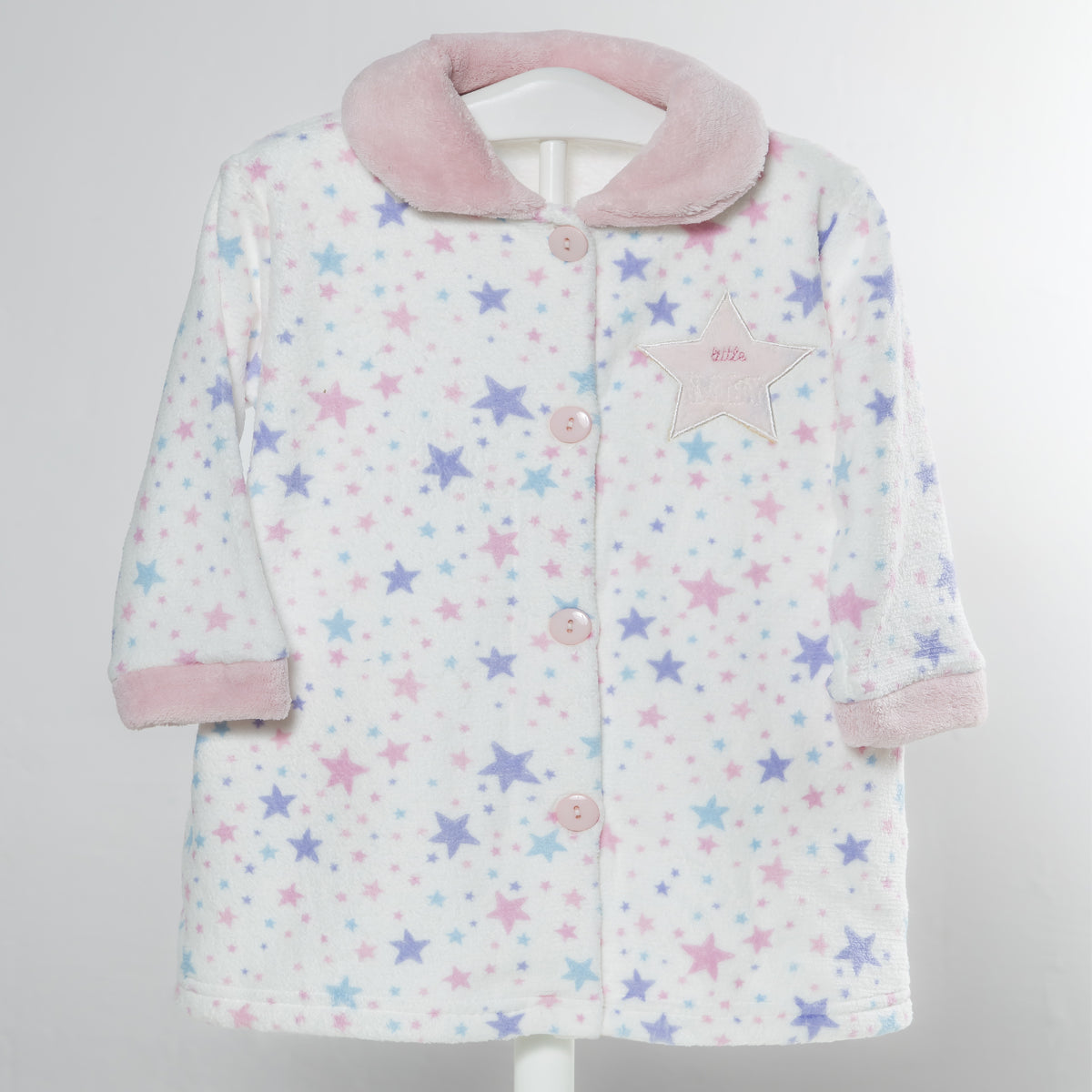 - Bata infantil para bebe en tejido coralina, este tejido es ideal para los días de invierno ya que proporciona calor al cuerpo