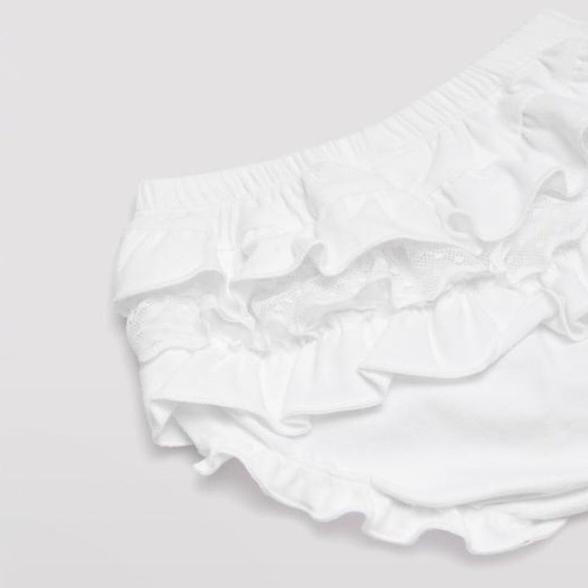 Braguita cubrepañal de algodón con volantes en zona posterior, composición 95% algodón 5% elastano.