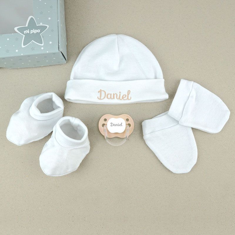 - Gorrito personalizado, manoplas y patucos