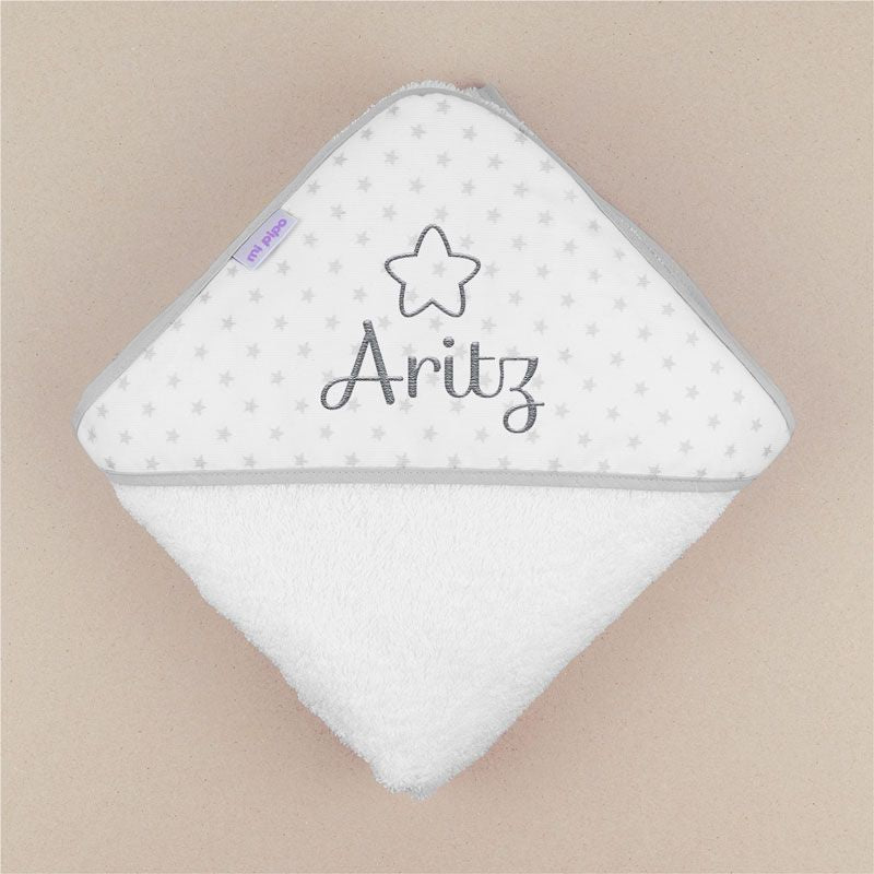 - Capucha de rizo con capa de tejido piqué donde se borda el nombre