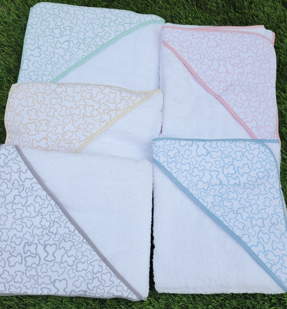 Haz de la hora del baño un momento aún más especial con nuestra capa de baño confeccionada en 100% algodón de rizo, suave, absorbente y delicada con la piel del bebé.