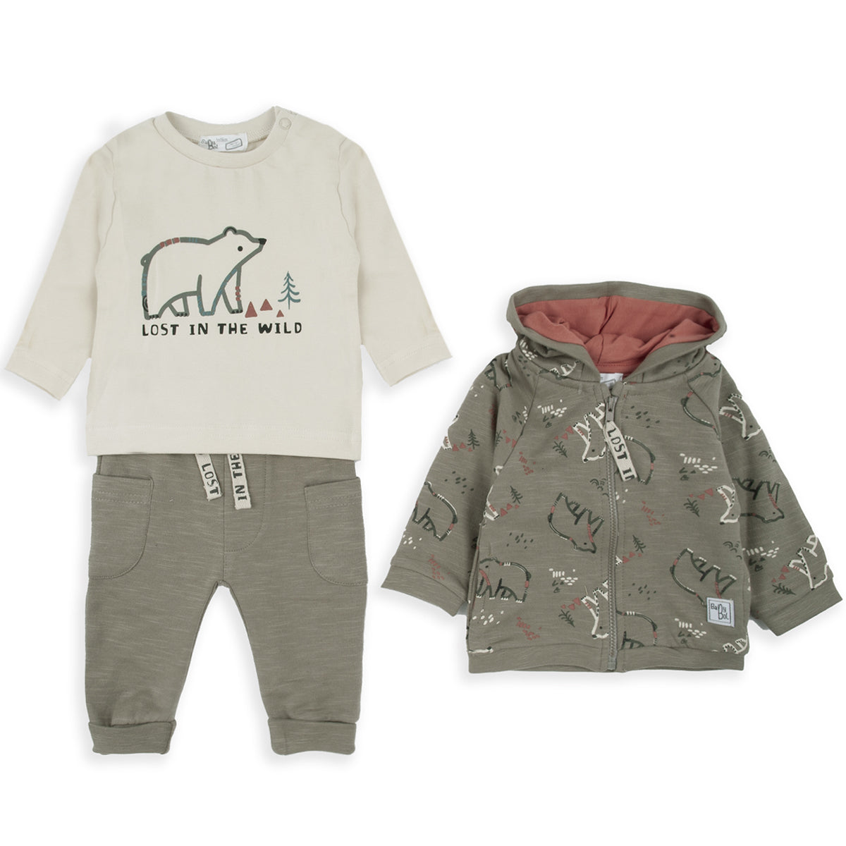 - Chándal para bebe de tres piezas, compuesto de chaqueta, camiseta y pantalón