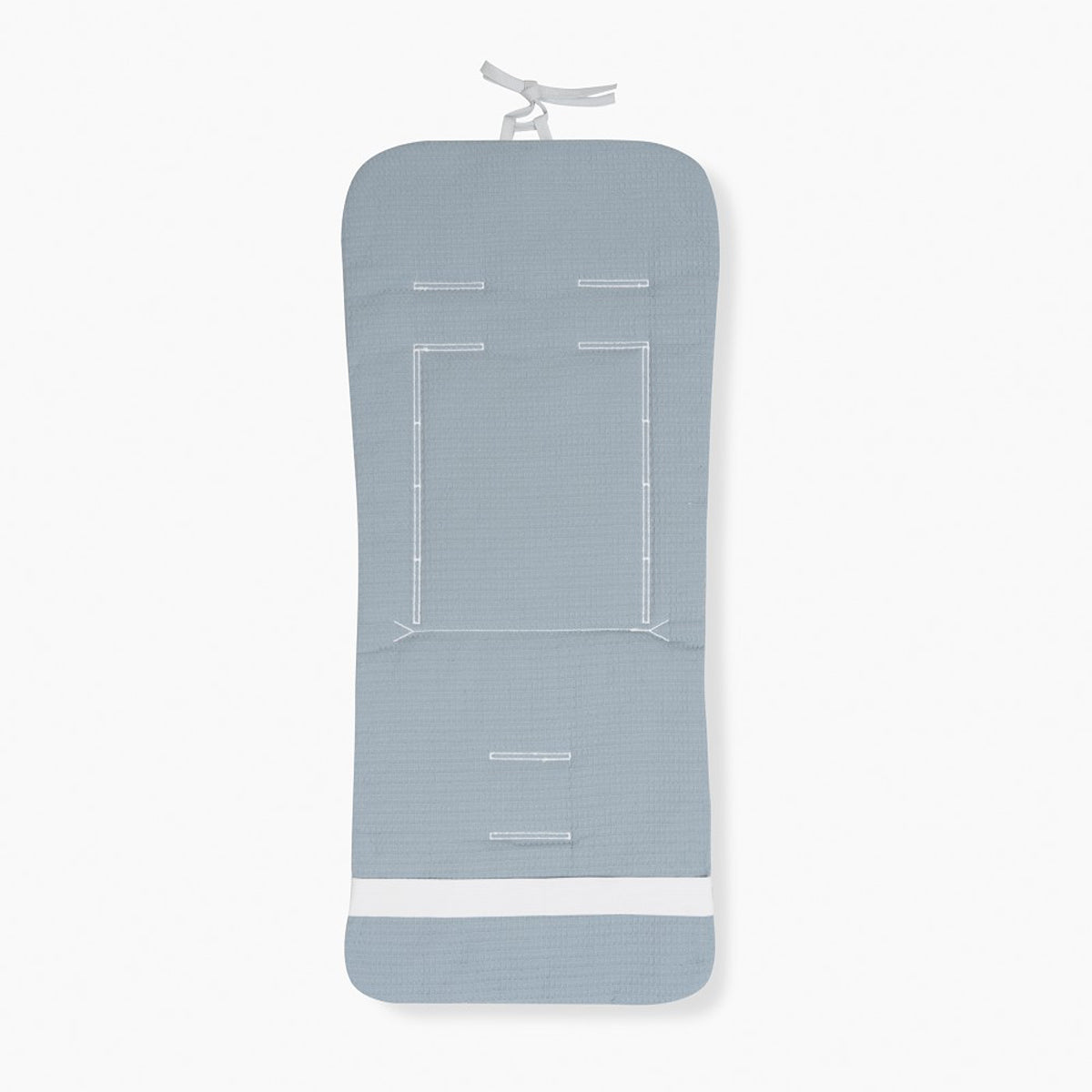 Colchoneta reversible una cara en tela tipo nido de abeja y otra con dibujos de animales, en un tono petróleo.