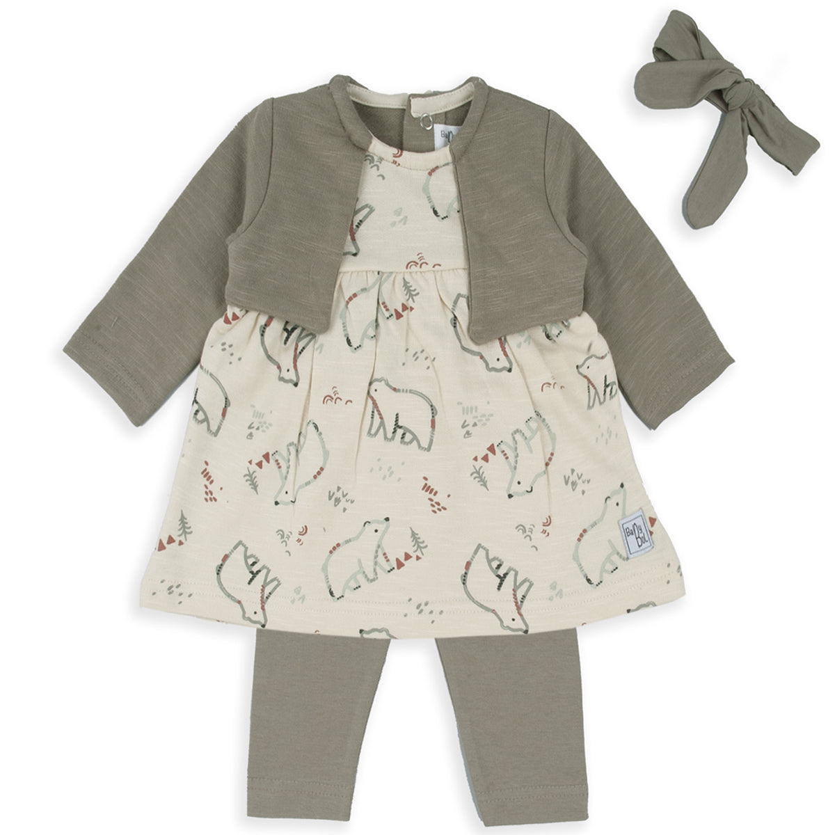 - Conjunto para bebe de dos piezas compuesto de; vestido y malla