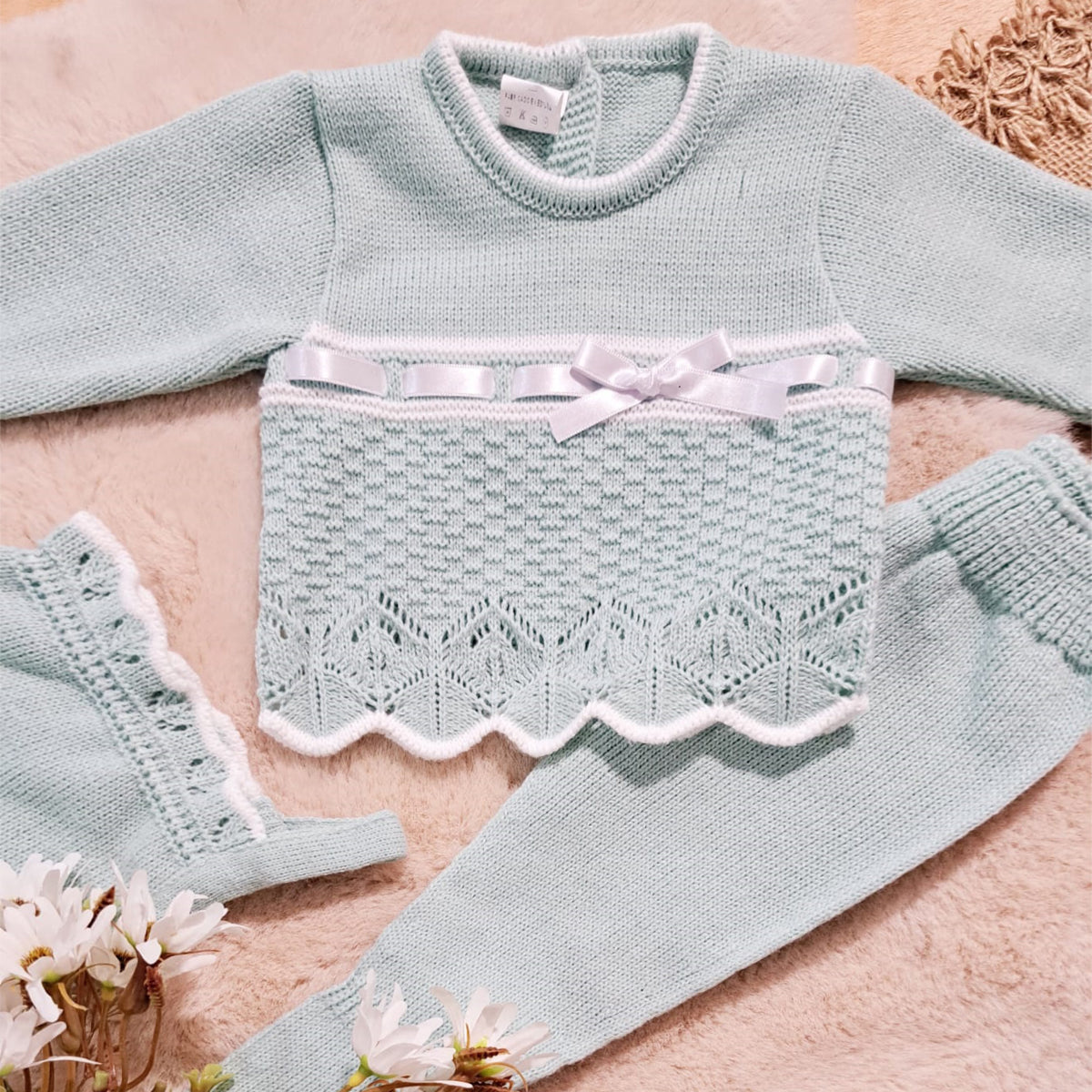 - Conjunto de lana compuesto de tres piezas; jersey, polaina y gorro