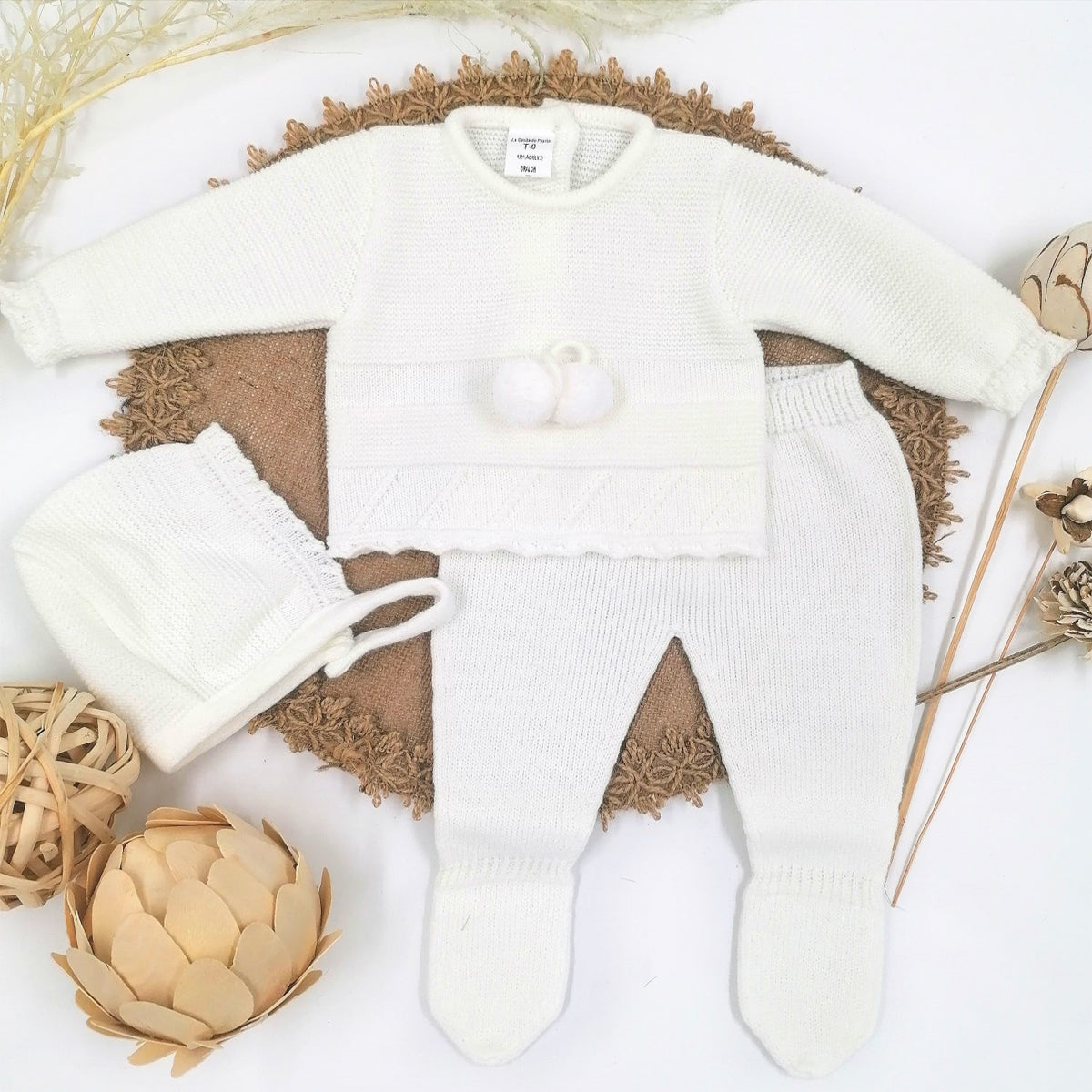 Conjunto de 3 piezas de punto crudo (0 a 3 meses)