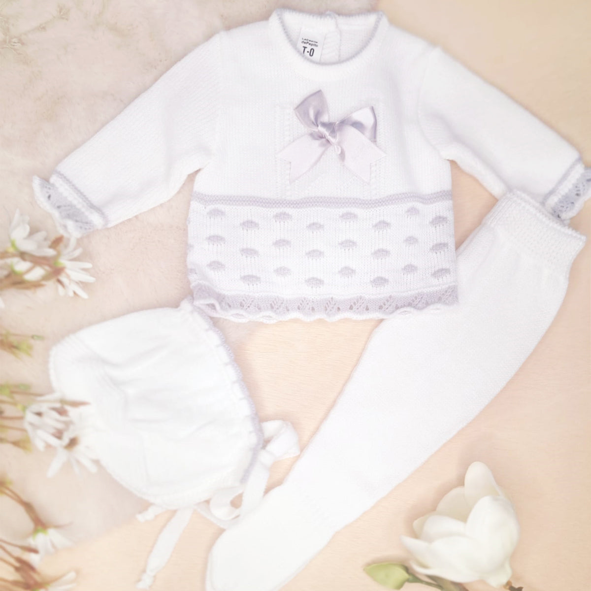 Conjunto de 3 piezas de punto blanco roto/gris (0 a 3 meses)