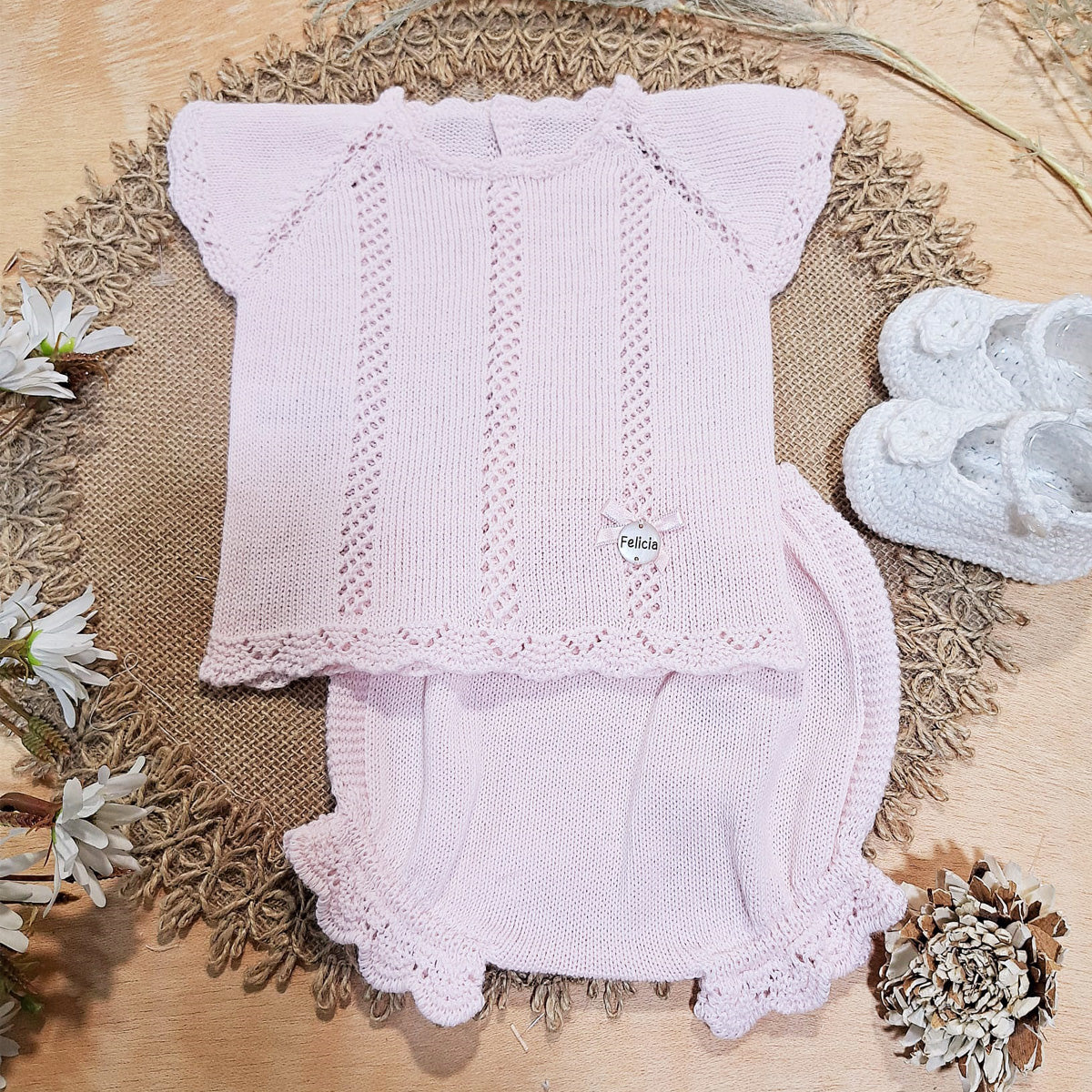 - Conjunto de dos piezas en punto perle compuesto jersey y braga cubre pañal