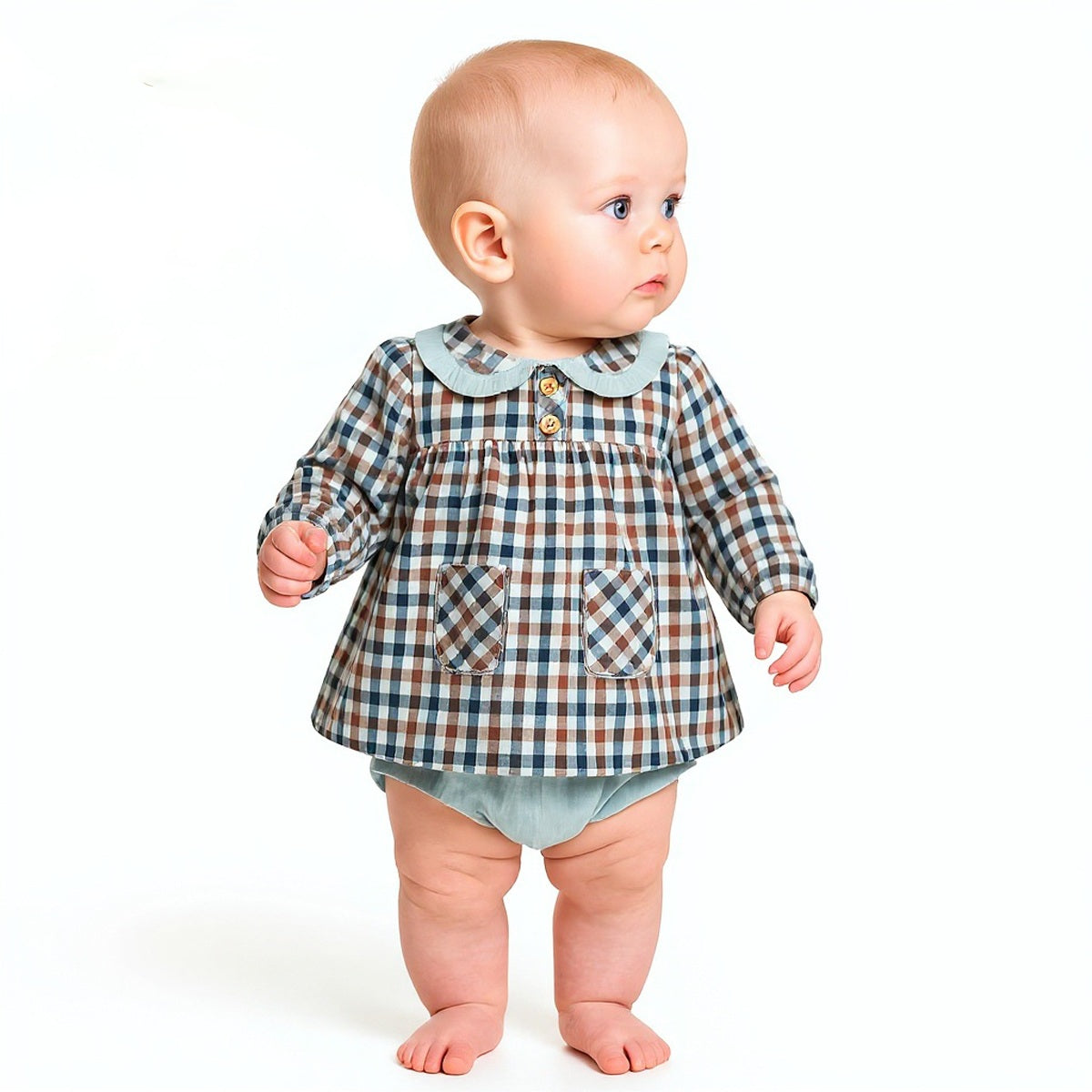 - Jesusito de dos piezas compuesto de vestido y cubre pañal a juego.