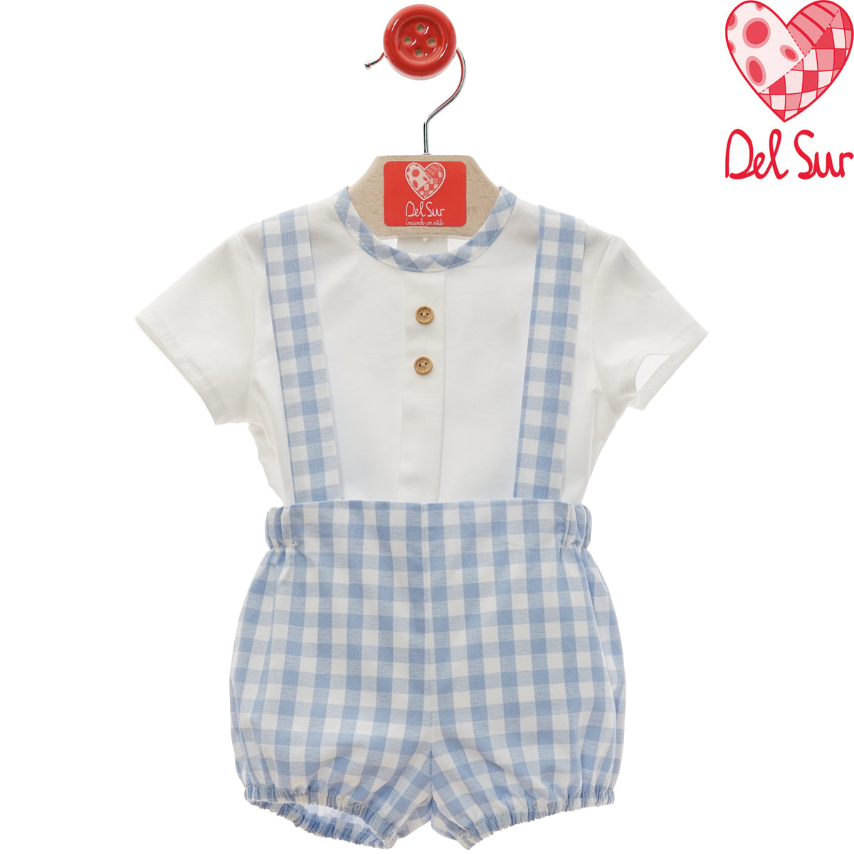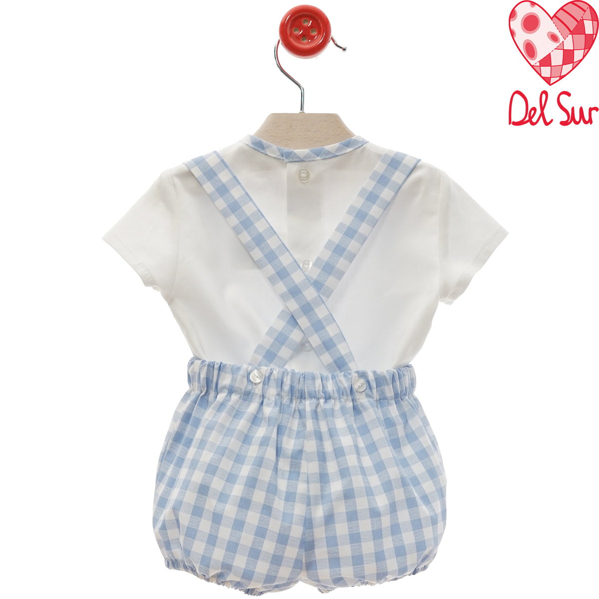 - Conjunto de tela compuesto de dos piezas; peto y camiseta, modelo colección Levante