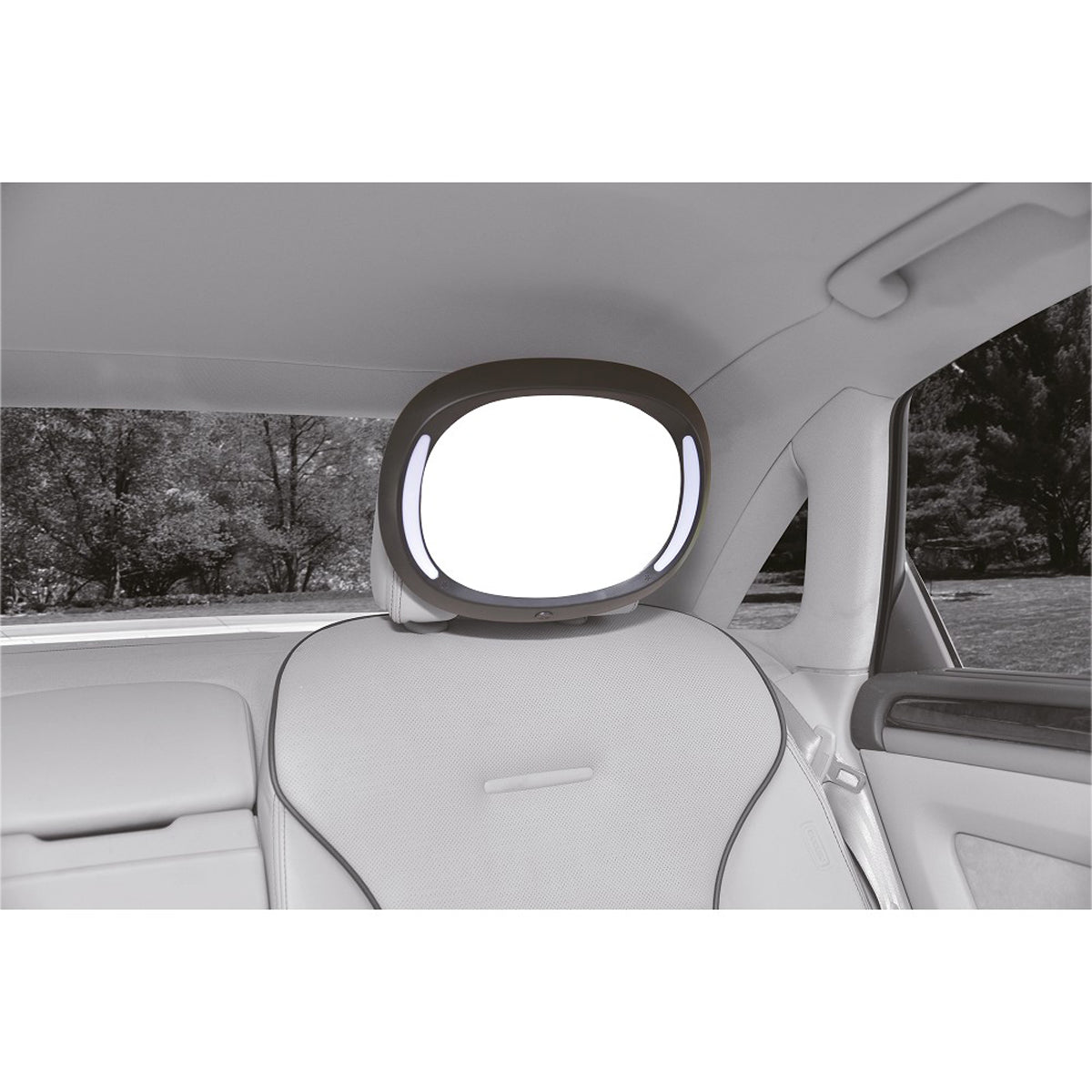 Espejo de LED de seguridad para bebés. Marco de plástico de alta calidad. Superficie acrílica irrompible y fácil instalación con arnés. Iluminación constante.