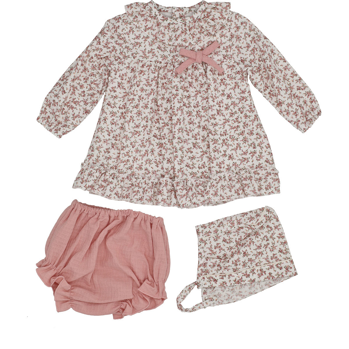 - Jesusito de tres piezas compuesto de vestido, capota y cubre pañal a juego