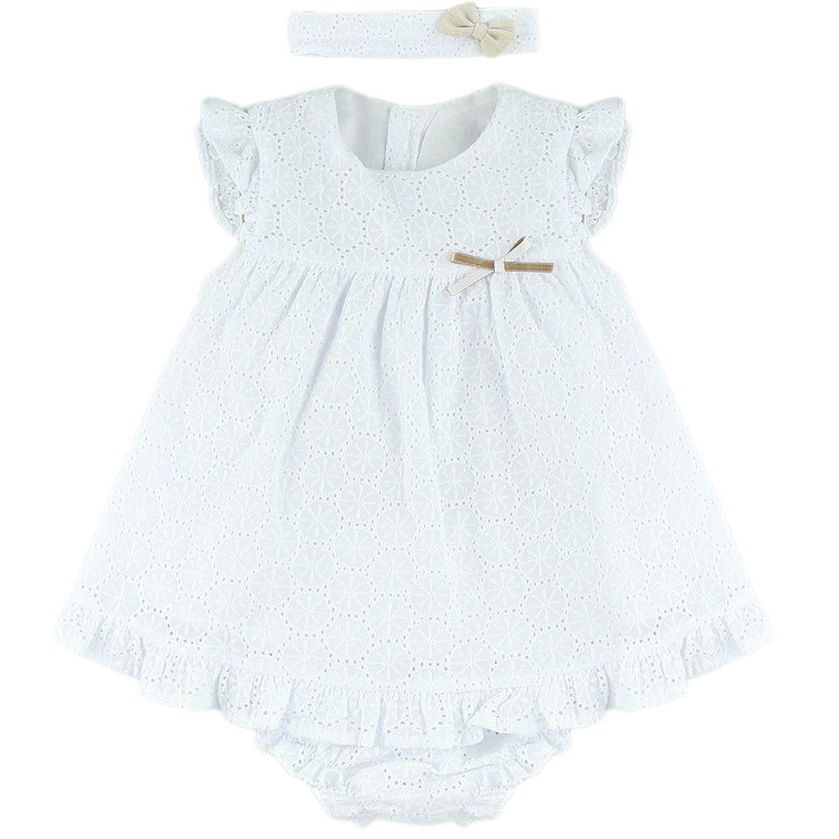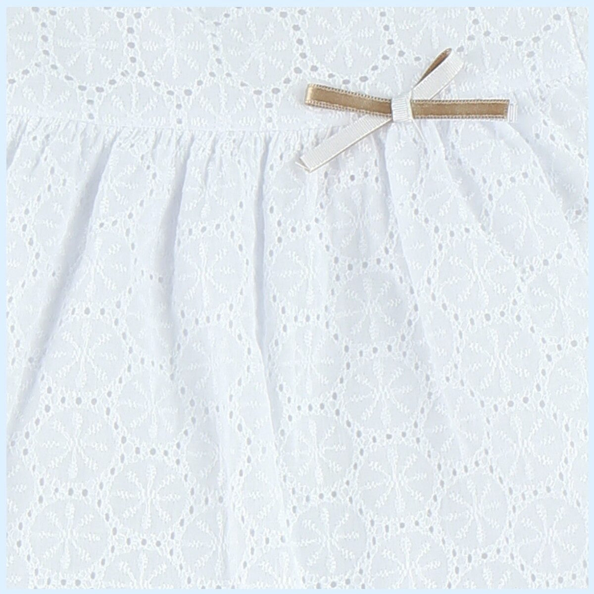 - Jesusito compuesto de vestido en un tono blanco y cubre pañal a juego