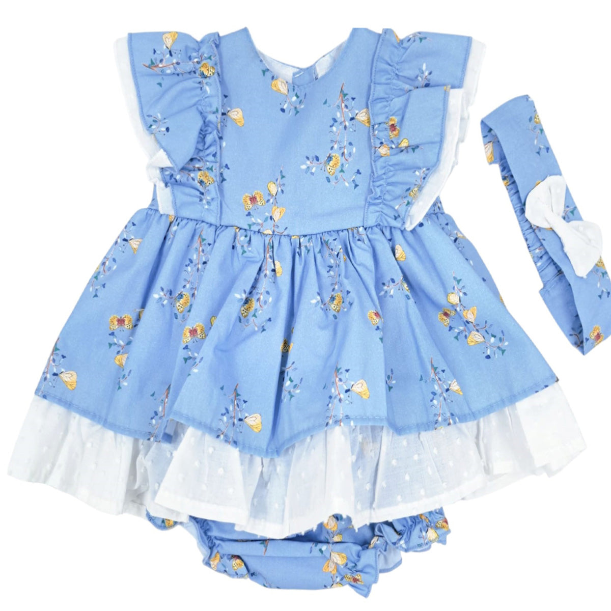 - Jesusito floreado compuesto de vestido en un tono blanco/azul y cubre pañal a juego