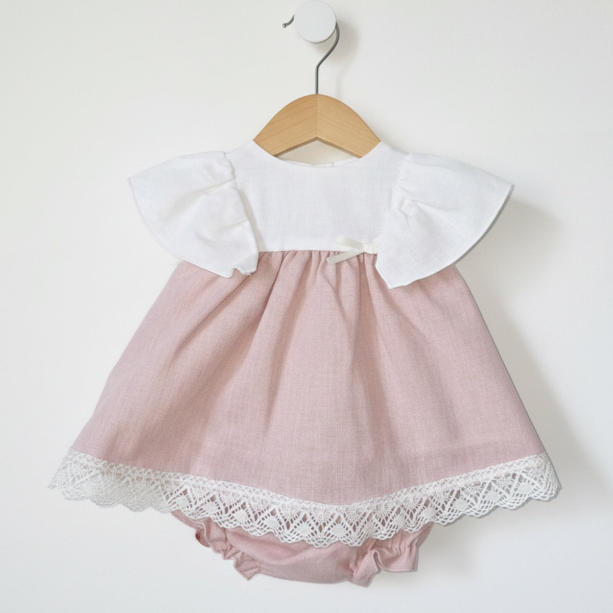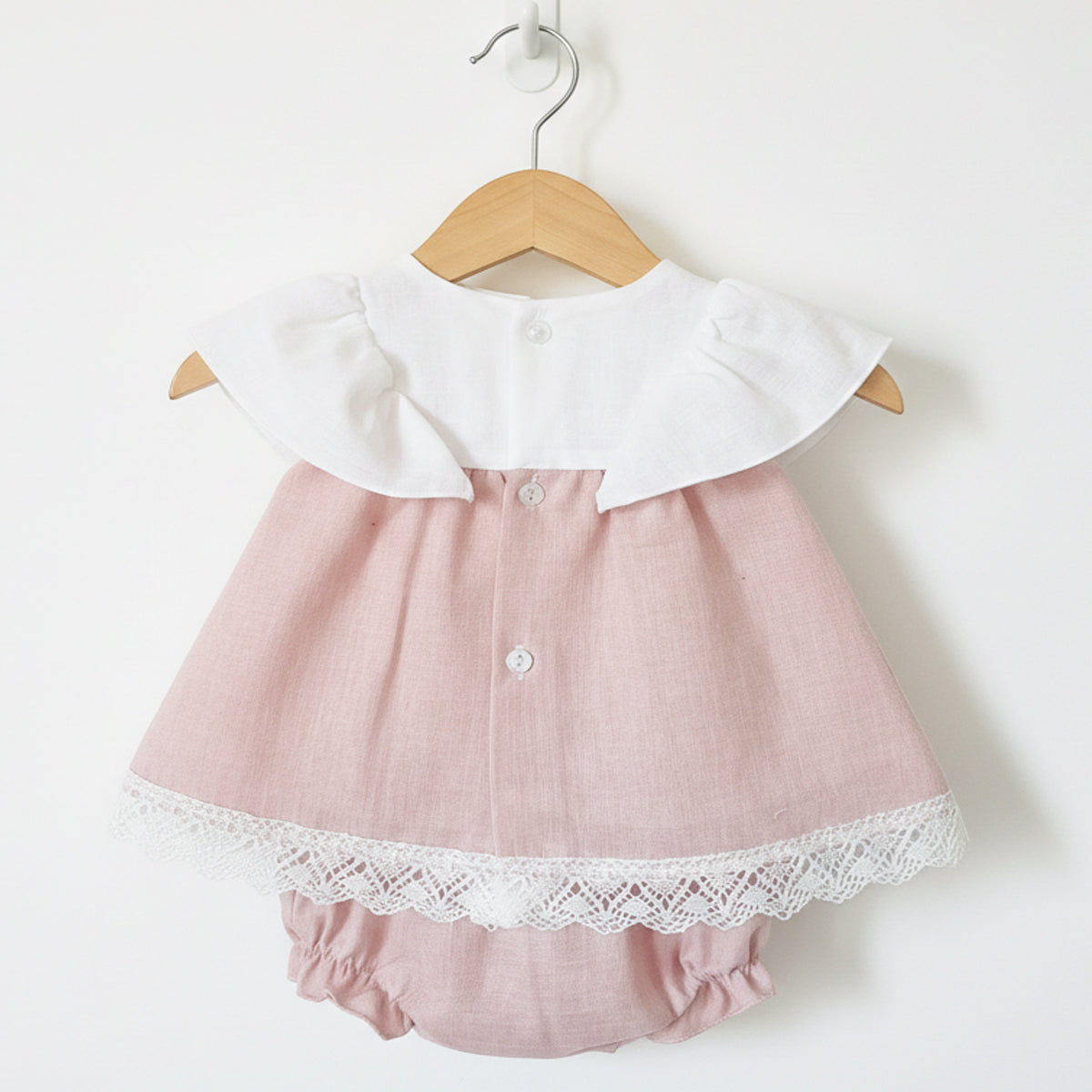 - El diseño incluye un lazo decorativo que aporta un toque clásico y refinado, junto con terminaciones en puntilla, que realzan la prenda y la convierten en una opción perfecta tanto para el uso diario como para ocasiones especiales. El conjunto se completa con un cubrepañal a juego, diseñado para ofrecer máximo confort y libertad de movimiento, sin renunciar al estilo.