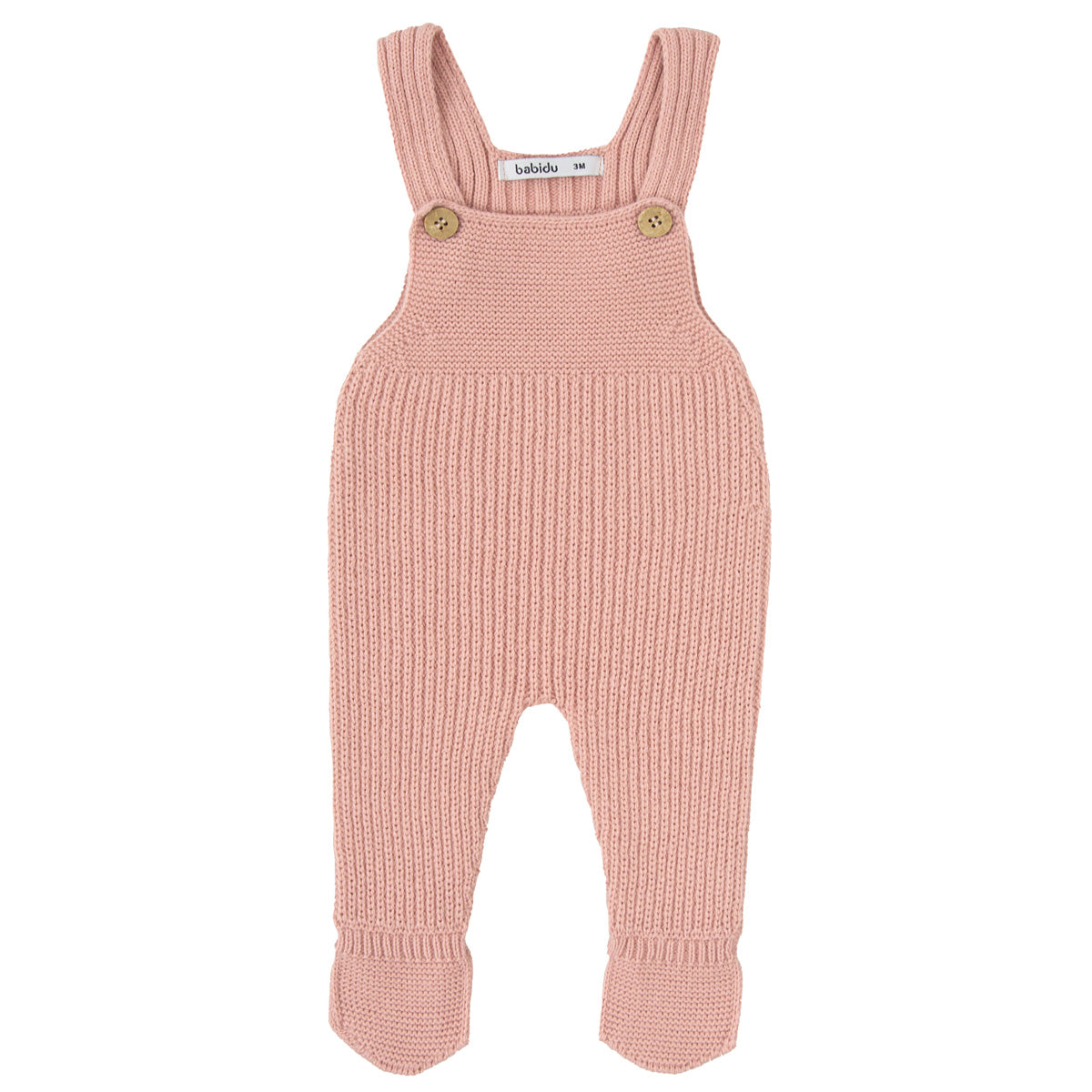 - Mono de punto de la colección encina en un tono rosa, diseño punto gordo con dos botones color arena