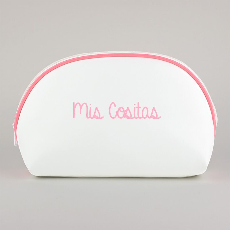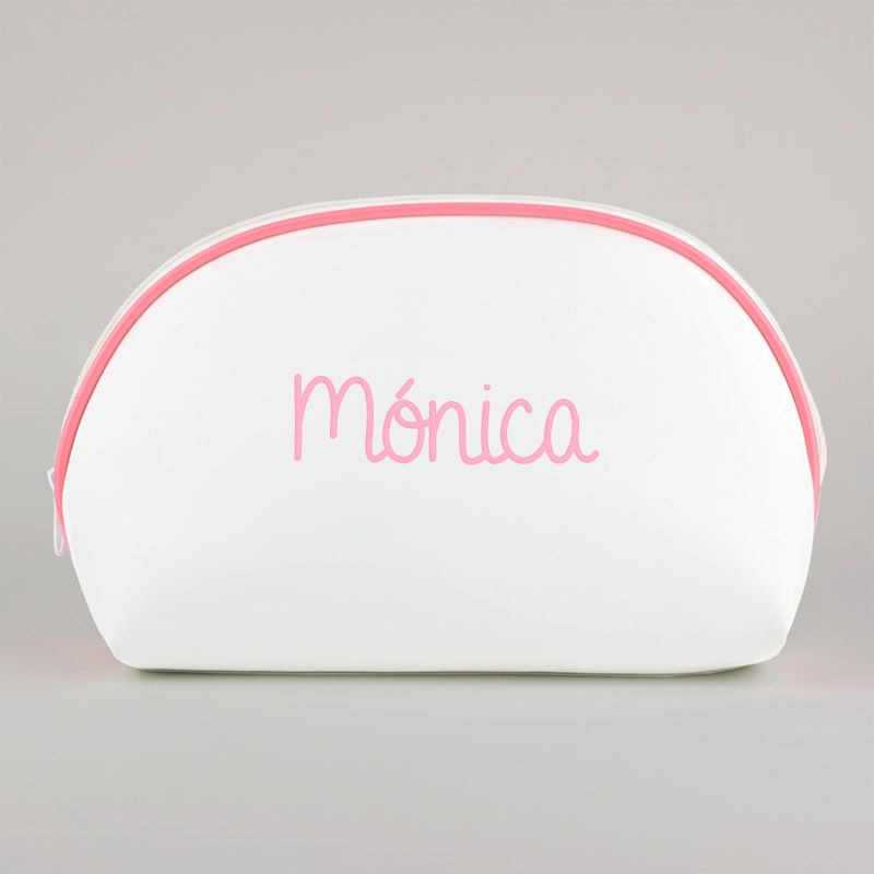 Neceser Polipiel Blanco-Ribete Rosa Personalizado