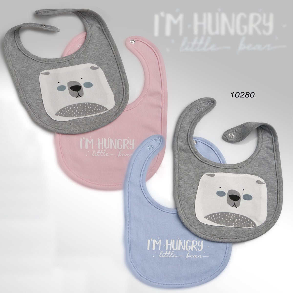 Pack de dos baberos de algodón, embalaje de el producto en bolsa, medidas 16×18 aproximadamente.