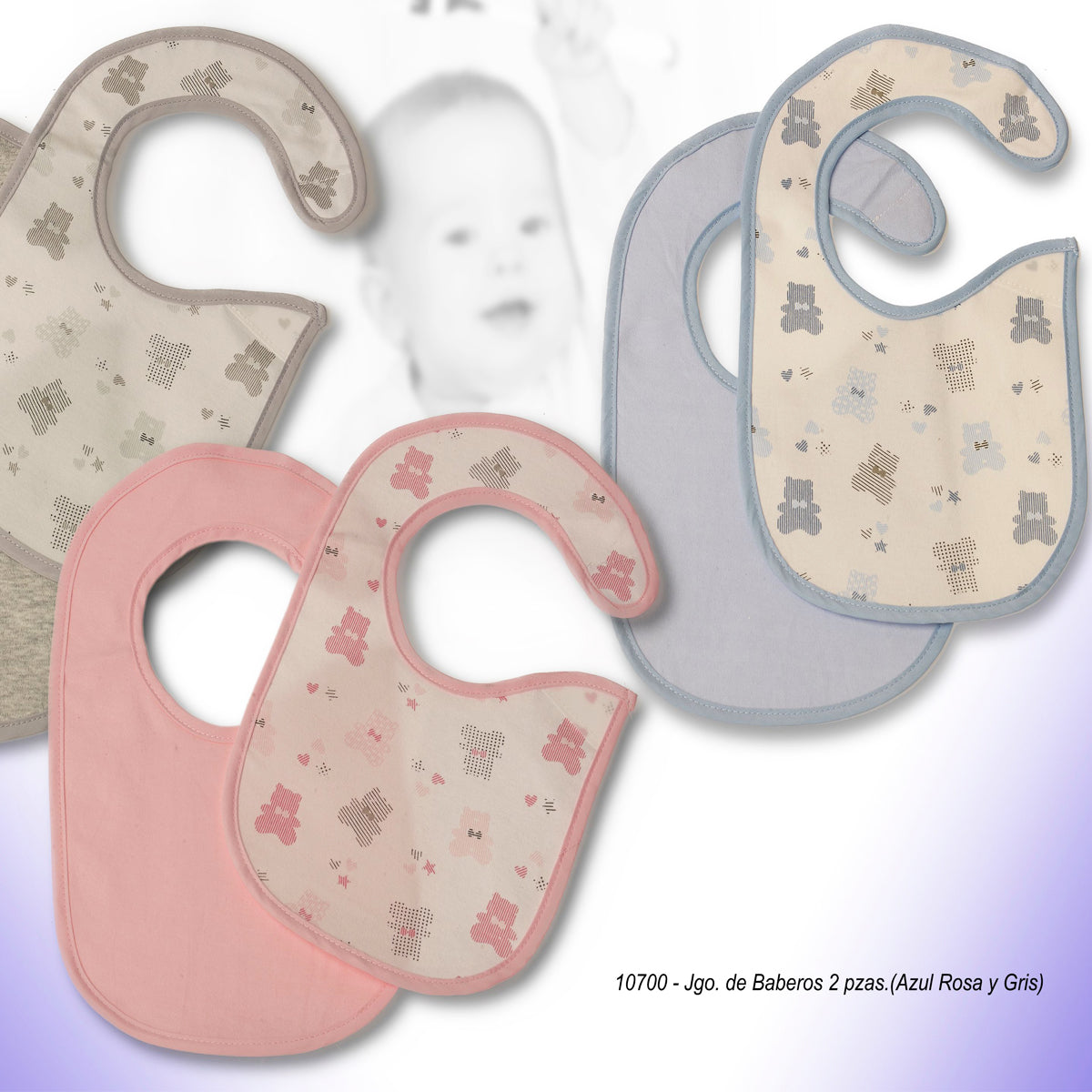 Pack de dos baberos de algodón, embalaje de el producto en bolsa, medidas 16×18 aproximadamente.