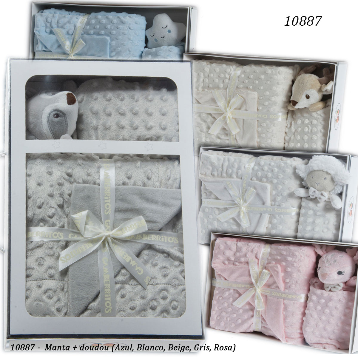 - Set de regalo dos piezas; manta de topitos tacto aterciopelado y doudou a juego con diferentes diseños y colores (sin personalizar)