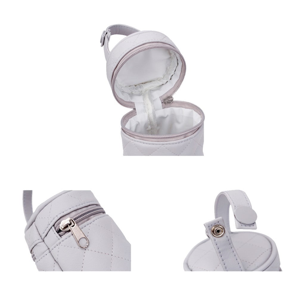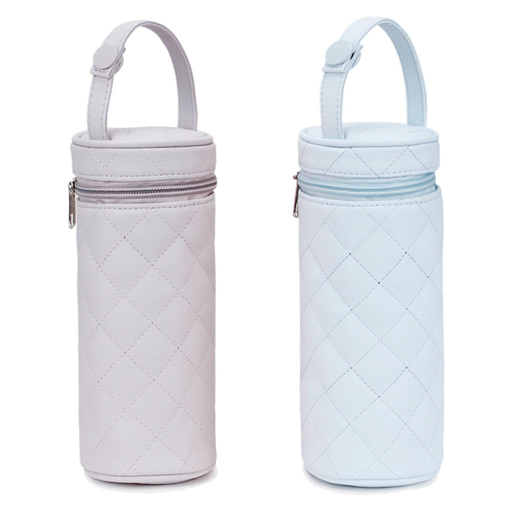 Porta biberón confeccionado en polipiel de la marca Duffi Baby. Modelo con cremallera e impermeable.