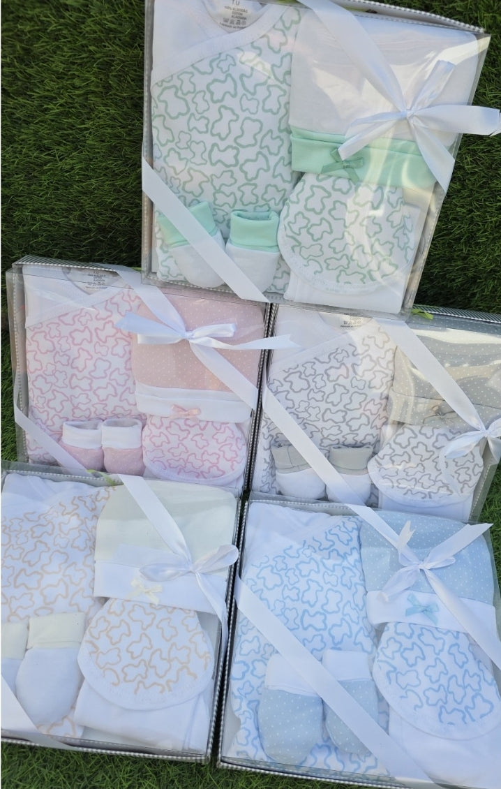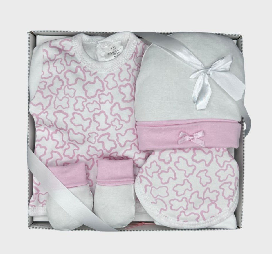 Con un diseño tierno de osito Tous, es un conjunto práctico y adorable, ideal tanto para el hospital como para los primeros días en casa.