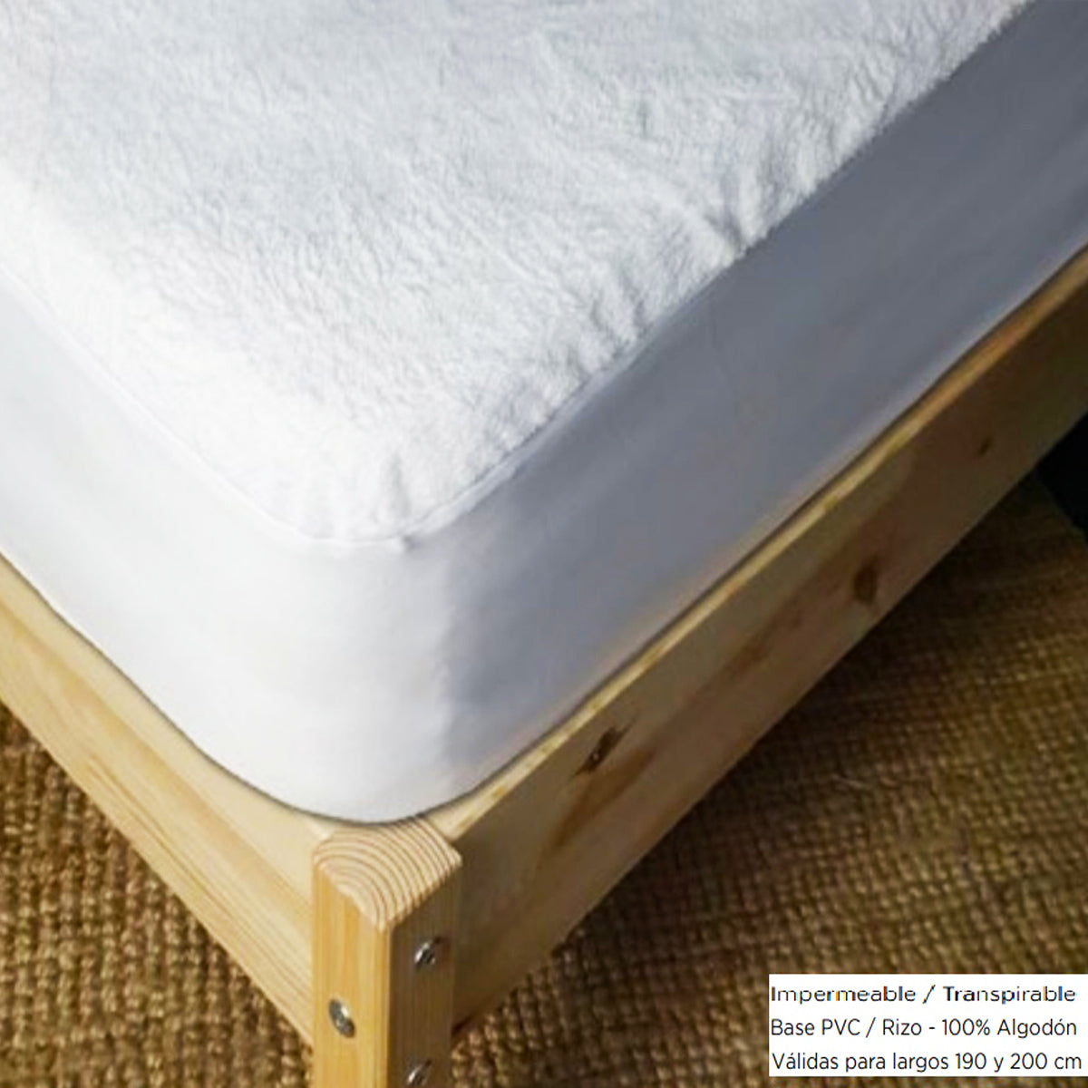 - Protector de colchón impermeable y transpirables especial para barrera antiácaros , rizo 100% algodón, base PVC.