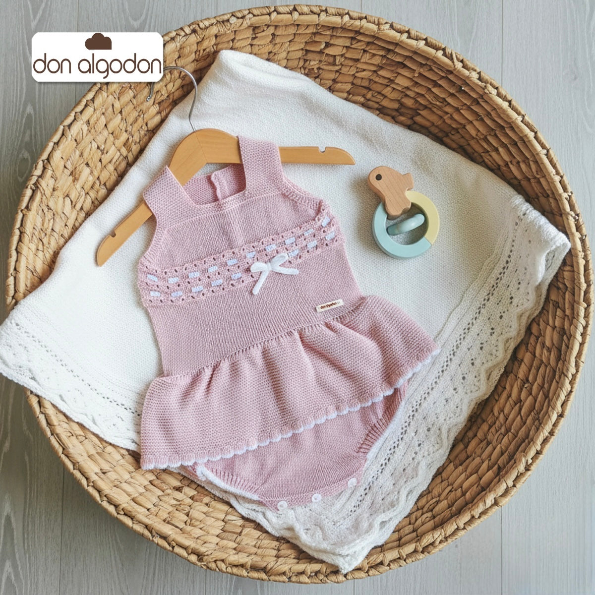 - Ranita de punto. Fabricada en España por la marca Don Algodón, con materiales suaves y delicados, garantizando comodidad para los más pequeños.