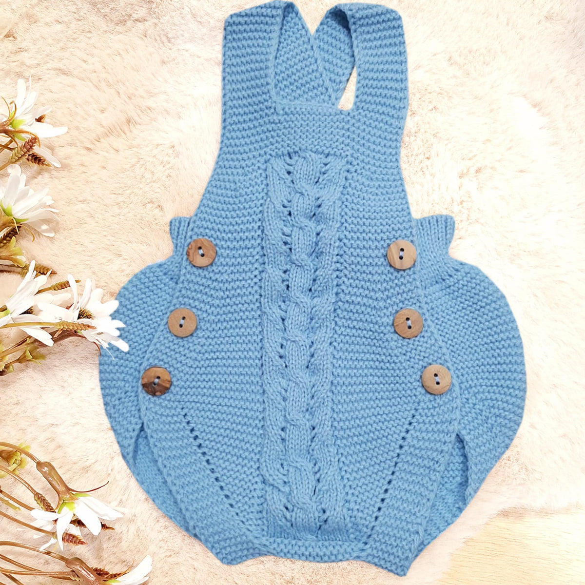 - Ranita para bebés de punto en color cristal y botones en color arena