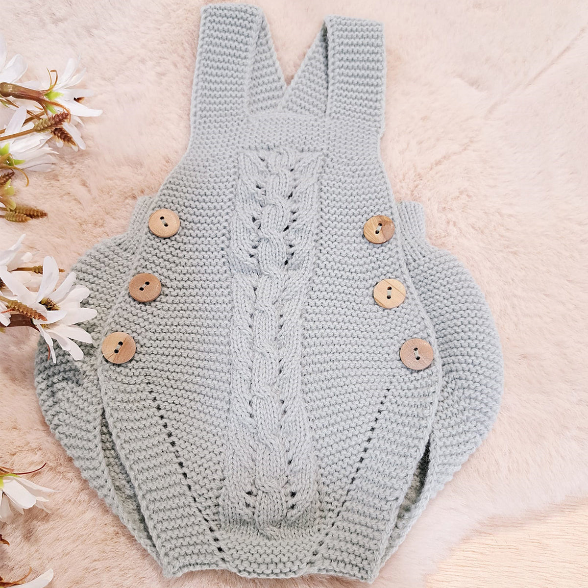 - Ranita para bebés de punto en color verde y botones en color arena