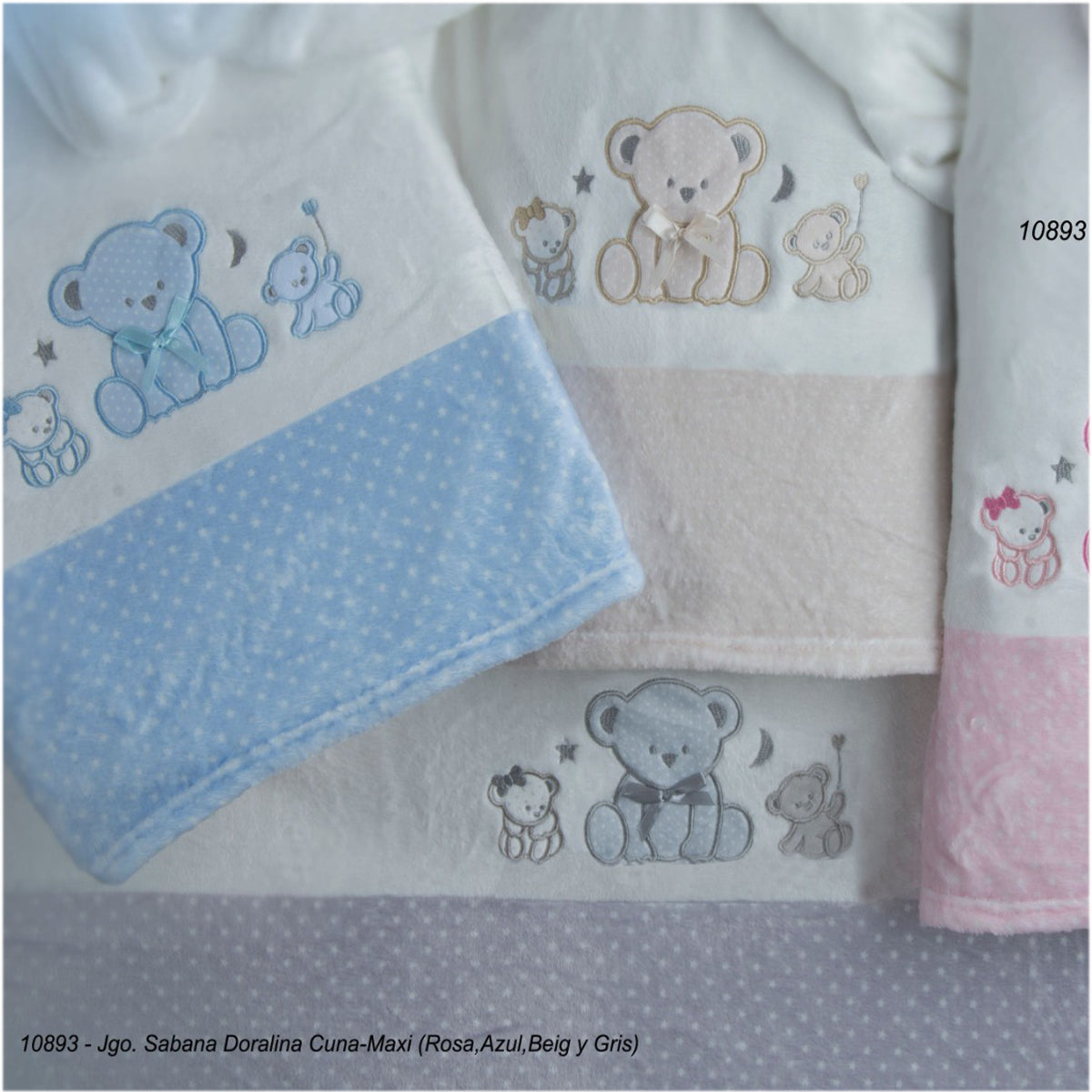 - Set de sábanas para cuna de tacto coralina y bordado de tres ositos