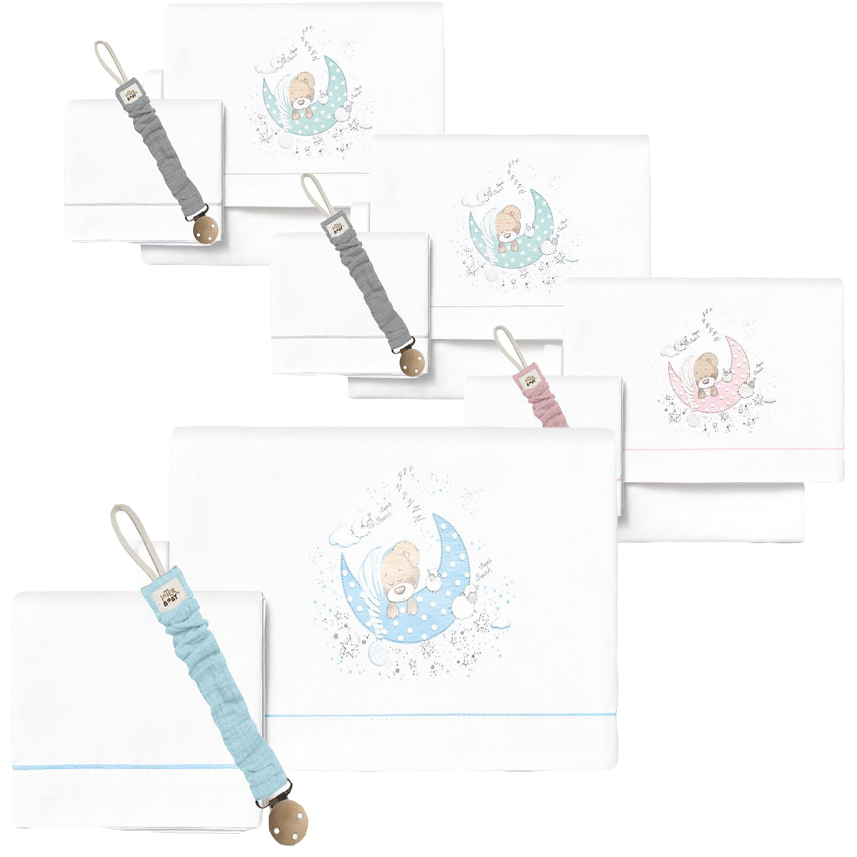 Set tríptico conjunto de sabanas para cuna de algodón colección oso lazo.