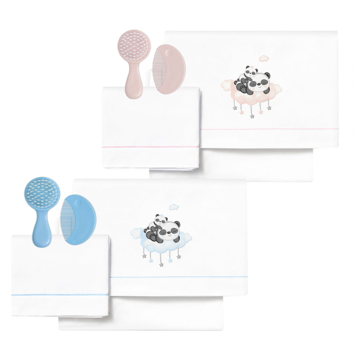 Set tríptico conjunto de sabanas para cuna de algodón colección panda.