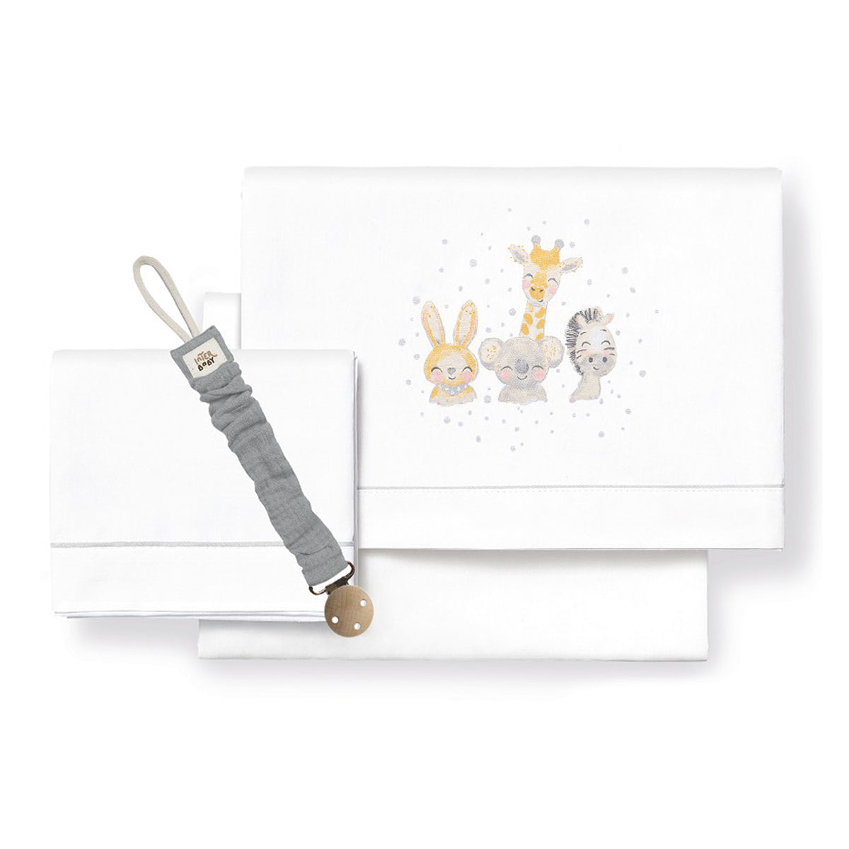 - Conjunto de sabanas de algodón para cuna compuesto por encimera bajera funda de el cojín + chupetero de regalo.