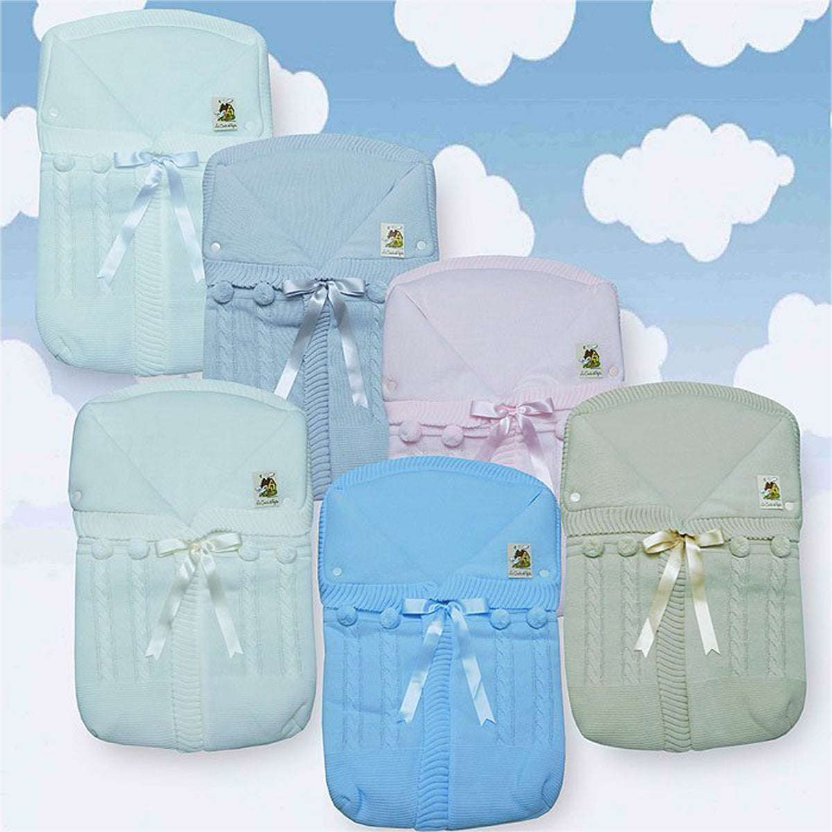 - Saco de punto con pompones y lazo, cremallera por el medio invisible protegida por el volante central