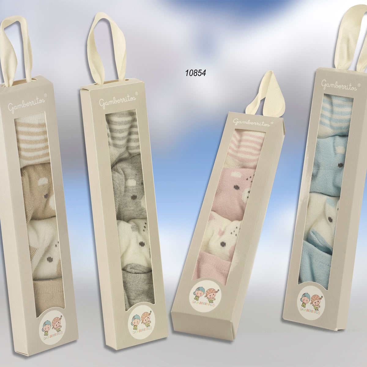 - Pack regalo de 4 pares de calcetines primera puesta para bebe
