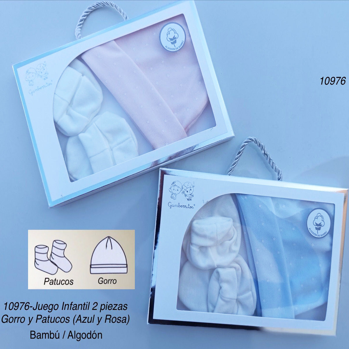 - Pack de regalo compuesto por 2 piezas; gorro y patucos
