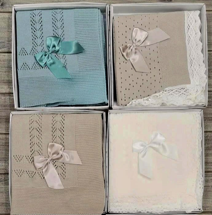 Este chal para bebé con detalles calados combina funcionalidad y estilo, ofreciendo una solución práctica y reconfortante para mantener al recién nacido abrigado y cómodo.